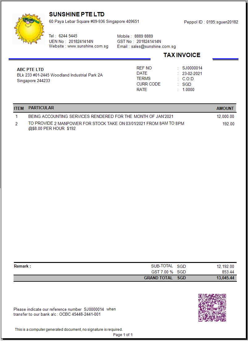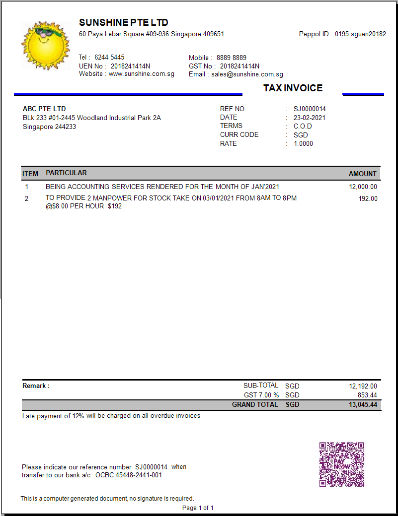 Sales Journal Service Invoice With Overdue 12% Tax Rate